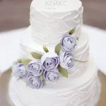 Нежный свадебный торт в пастельных тонах с тремя изящными ярусами. Основной белый крем гармонично сочетается с нежно-голубыми цветами, создавая ощущение воздушности и легкости. Каждый ярус украшен тонкими линиями и мелкими деталями, которые добавляют торту утонченности. Голубые цветы, будто только что сорванные с луга, придают композиции свежесть и романтичность. Этот торт — воплощение нежности и гармонии, идеально подходящее для особенного дня.