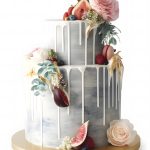 Двухъярусный свадебный торт с цветами, инжиром и макаруни