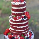 Маленький свадебный торт голый с ягодами и цветами