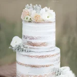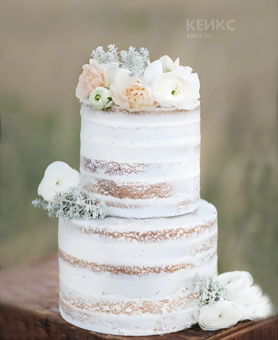 Маленький свадебный торт с белыми и бежевыми цветами
