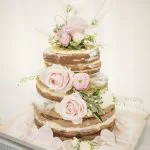 Маленький свадебный торт в стиле рустик с розовыми цветами