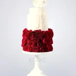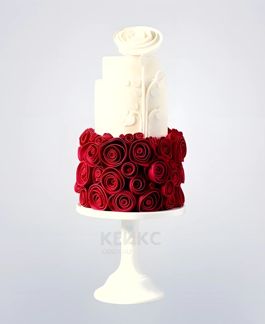 Маленький свадебный торт с красными розами и белой розой на вершине