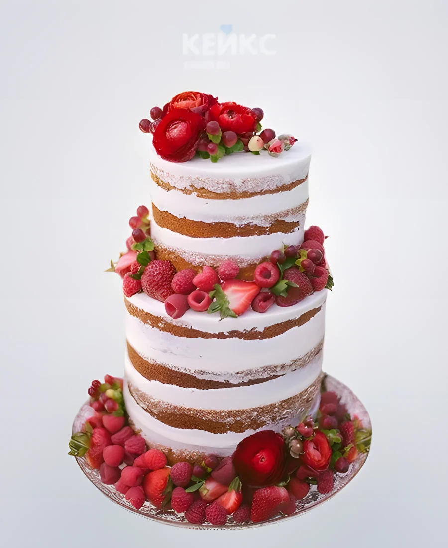 Маленький свадебный торт с красными ягодами