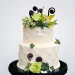 Маленький свадебный торт с узорами, цветами и суккулентами