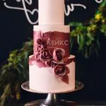 Свадебный торт марсала трехъярусный с бордовыми розами