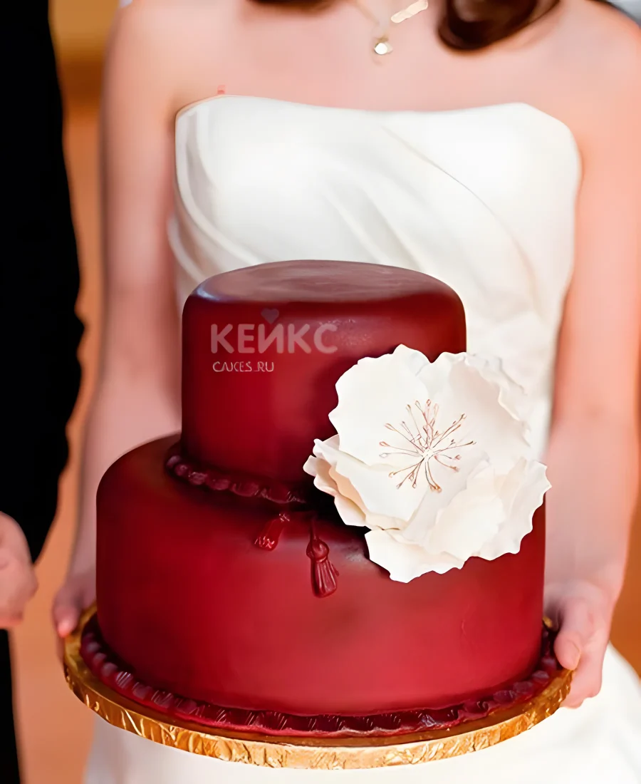 Свадебный торт цвета марсала с цветком