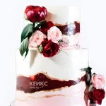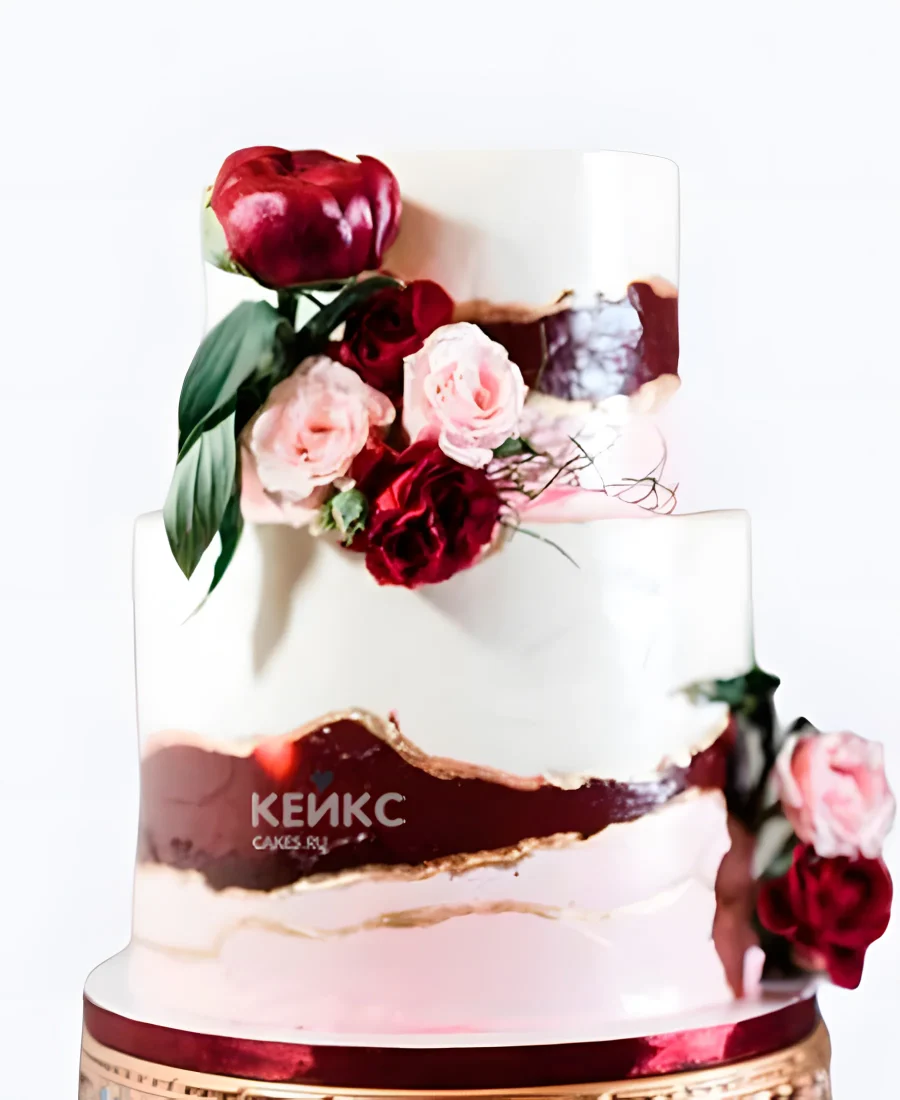 Свадебный торт марсала с красными полосами и цветами