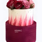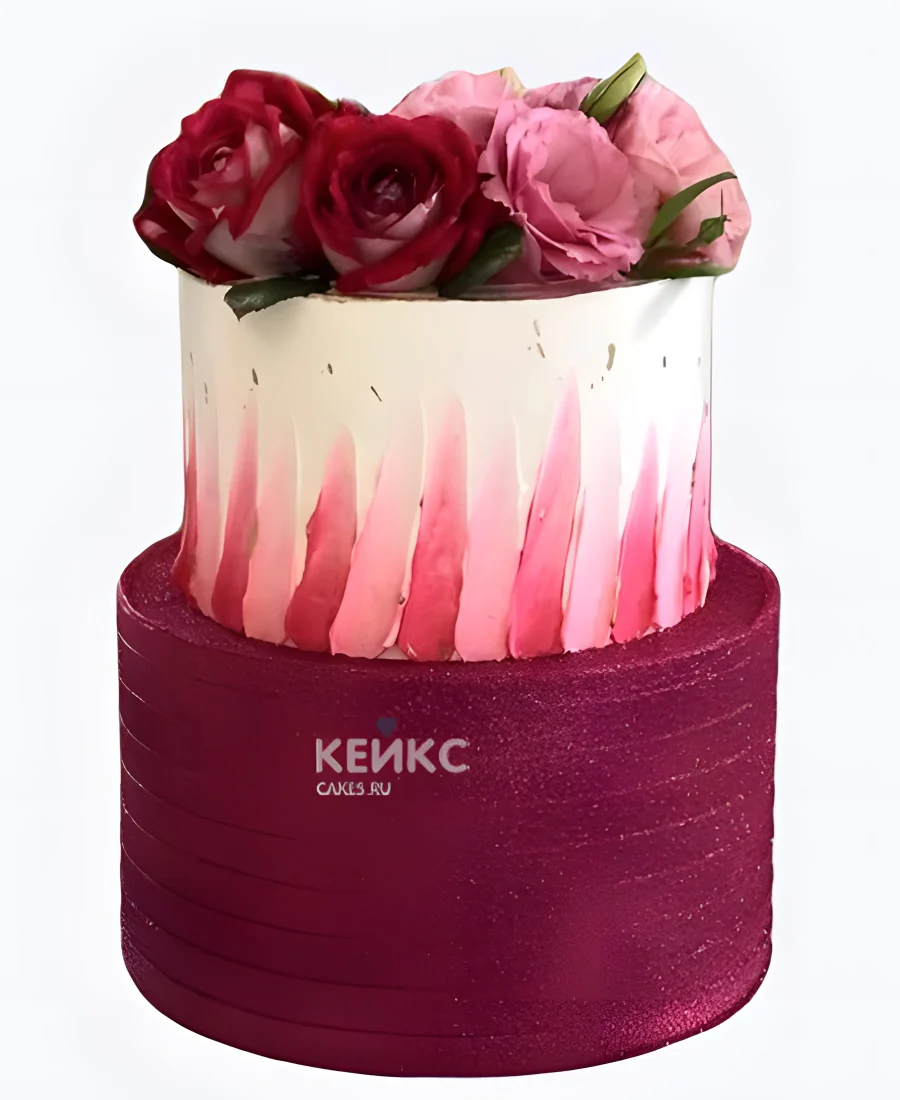 Свадебный торт марсала с розовыми мазками и розами