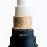 Свадебный торт многоярусный бело-синий с золотой посыпкой
