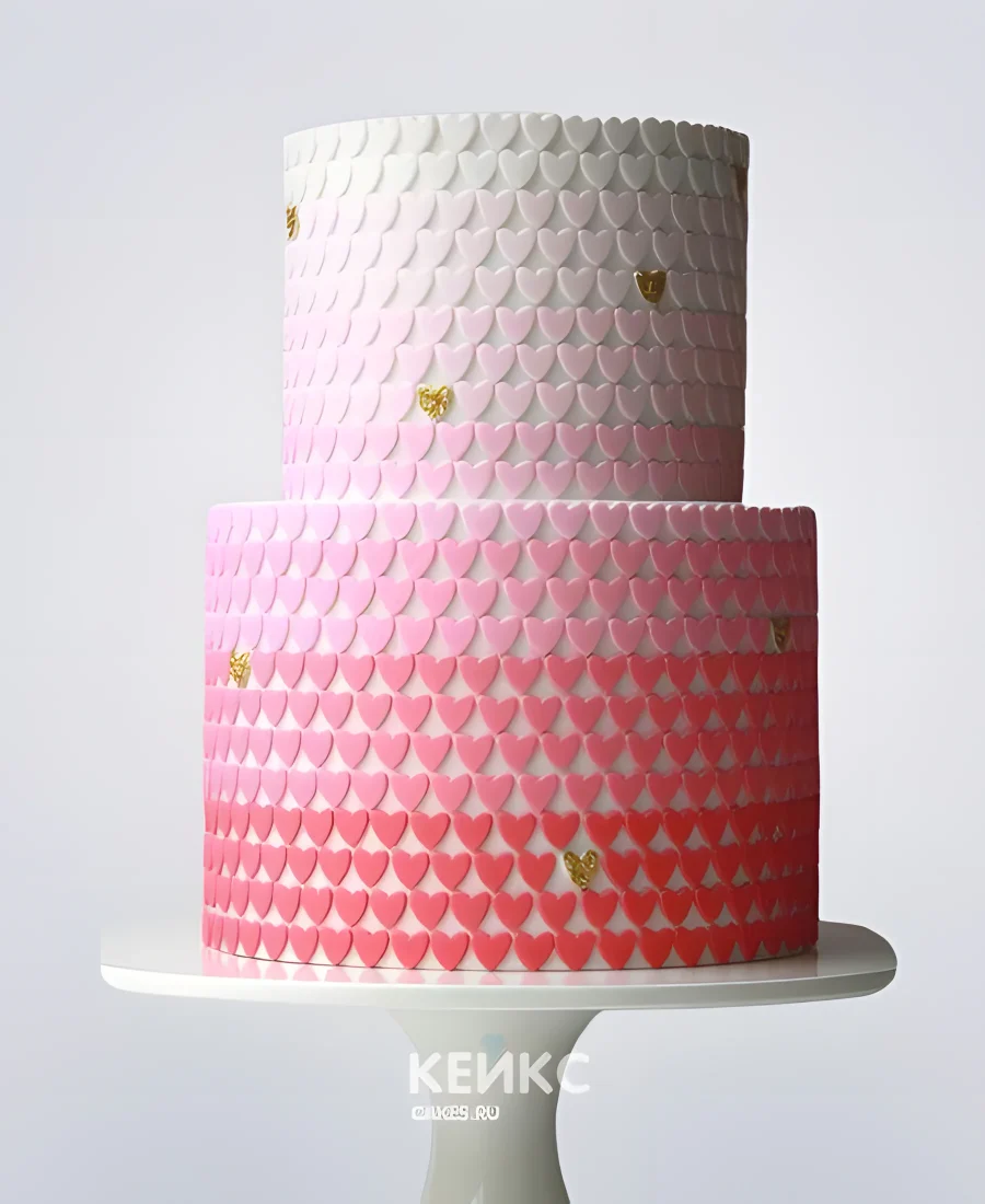 Двухъярусный свадебный торт в стиле омбре с сердечками