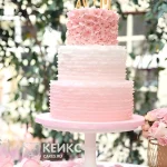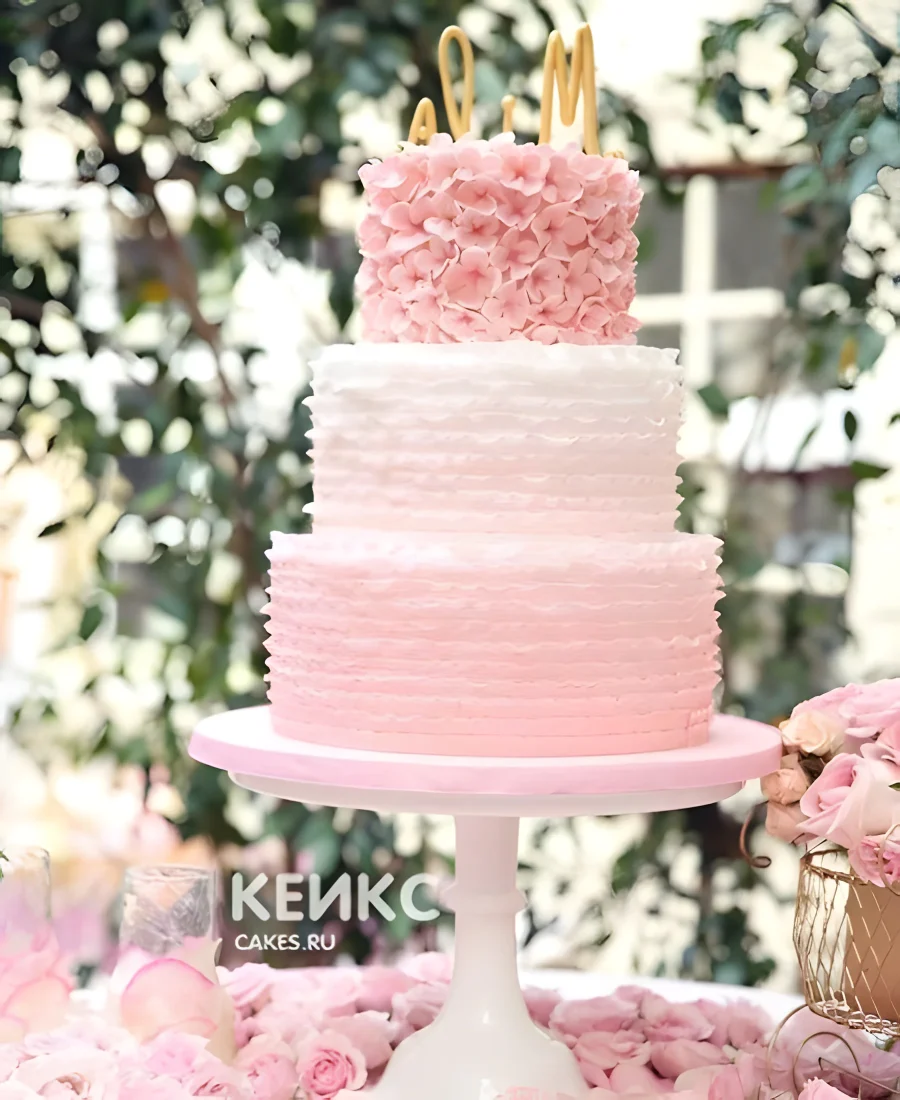 Нежный розовый свадебный торт омбре с рюшами