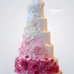 Свадебный розовый торт Омбре с цветами из мастики