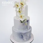 Элегантный трехъярусный торт в нежных персиковых тонах создает атмосферу романтики и торжественности. Живые орхидеи, гармонично расположенные между ярусами, придают композиции природную грацию и воздушность. Идеально гладкая поверхность мастики контрастирует с живыми лепестками, создавая волшебное сочетание рукотворного мастерства и природной красоты. Каждый ярус подчеркивает изысканность свадебного торжества, напоминая о нежности первых минут семейной жизни.