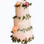 Нежный свадебный торт в теплых персиковых оттенках словно окутан мягким сиянием. Три яруса, покрытые бархатистым кремом, создают ощущение воздушности и легкости. Роскошные цветы из крема, будто только что сорванные в саду, добавляют торту романтичности и изысканности. Пастельные переливы и плавные линии делают этот торт настоящим украшением праздника.