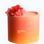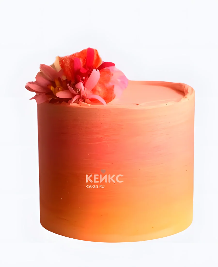 Одноярусный персиковый свадебный торт с цветком