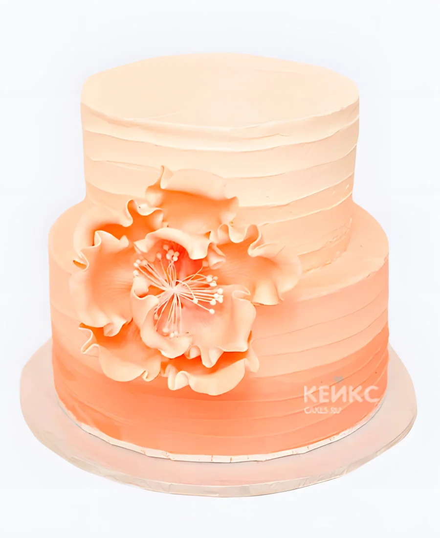 Свадебный торт персикового цвета рифленый с цветком