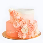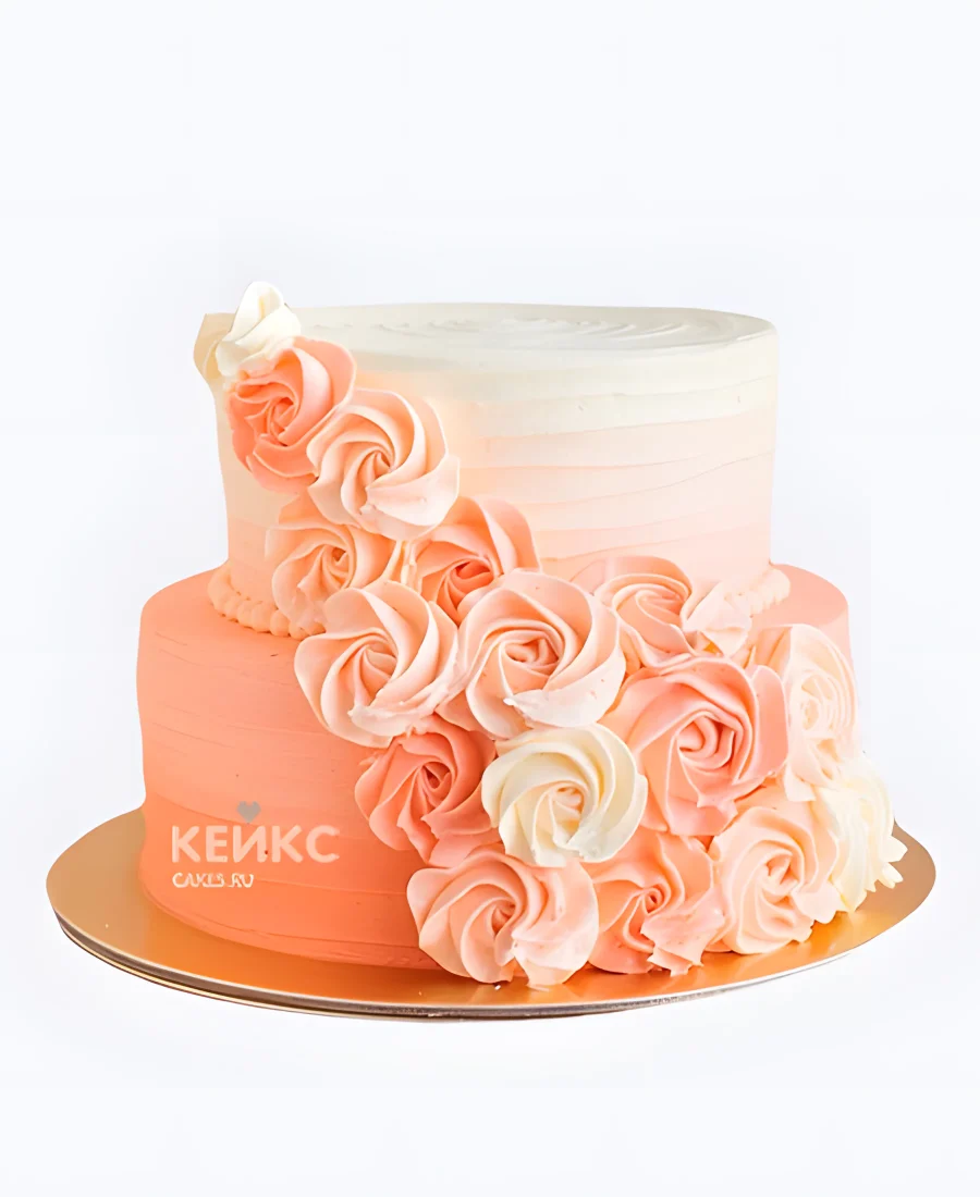 Свадебный торт персикового цвета рифленый с розами
