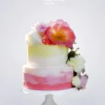 Двухъярусный свадебный торт с яркими пионами