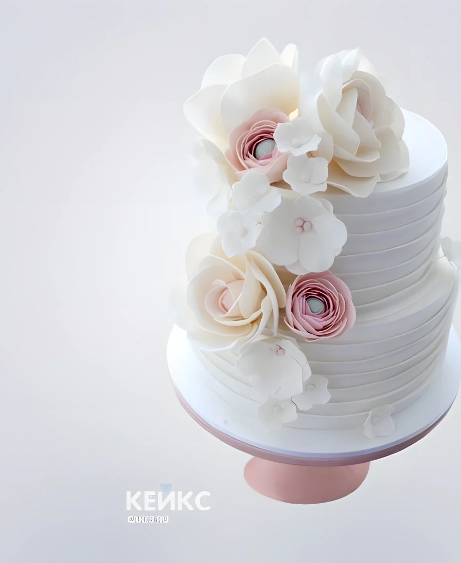 Белый свадебный торт украшенный букетом пионов