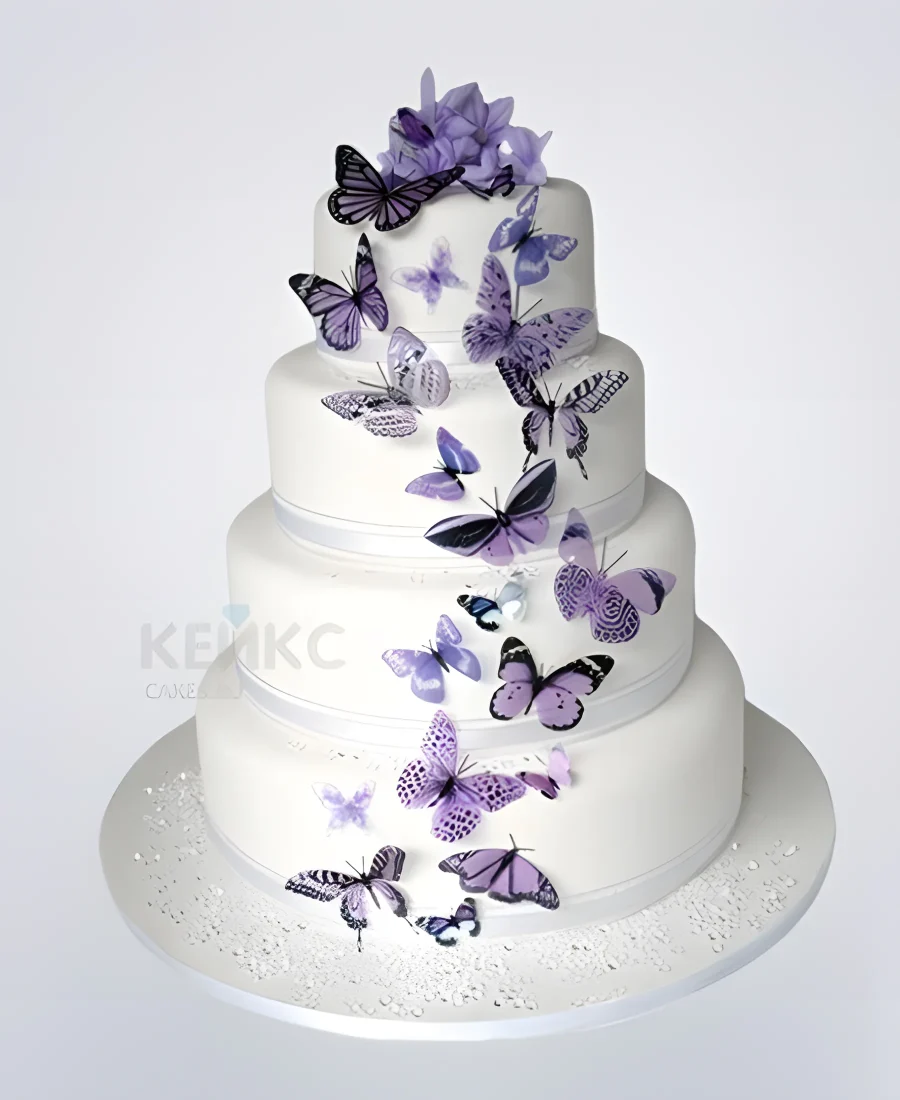 Свадебный торт с сиреневыми бабочками