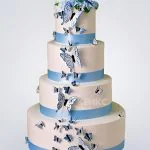 Свадебный торт с голубыми лентами, бабочками и цветами