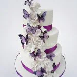 Свадебный торт белыми розами и фиолетовыми бабочками