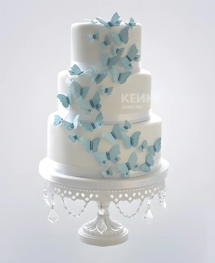 Свадебный торт белый с голубыми бабочками