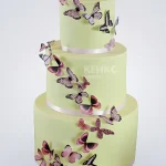 Свадебный торт светло-желтый, обвит бабочками