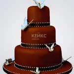 Свадебный торт коричневый с голубыми бабочками