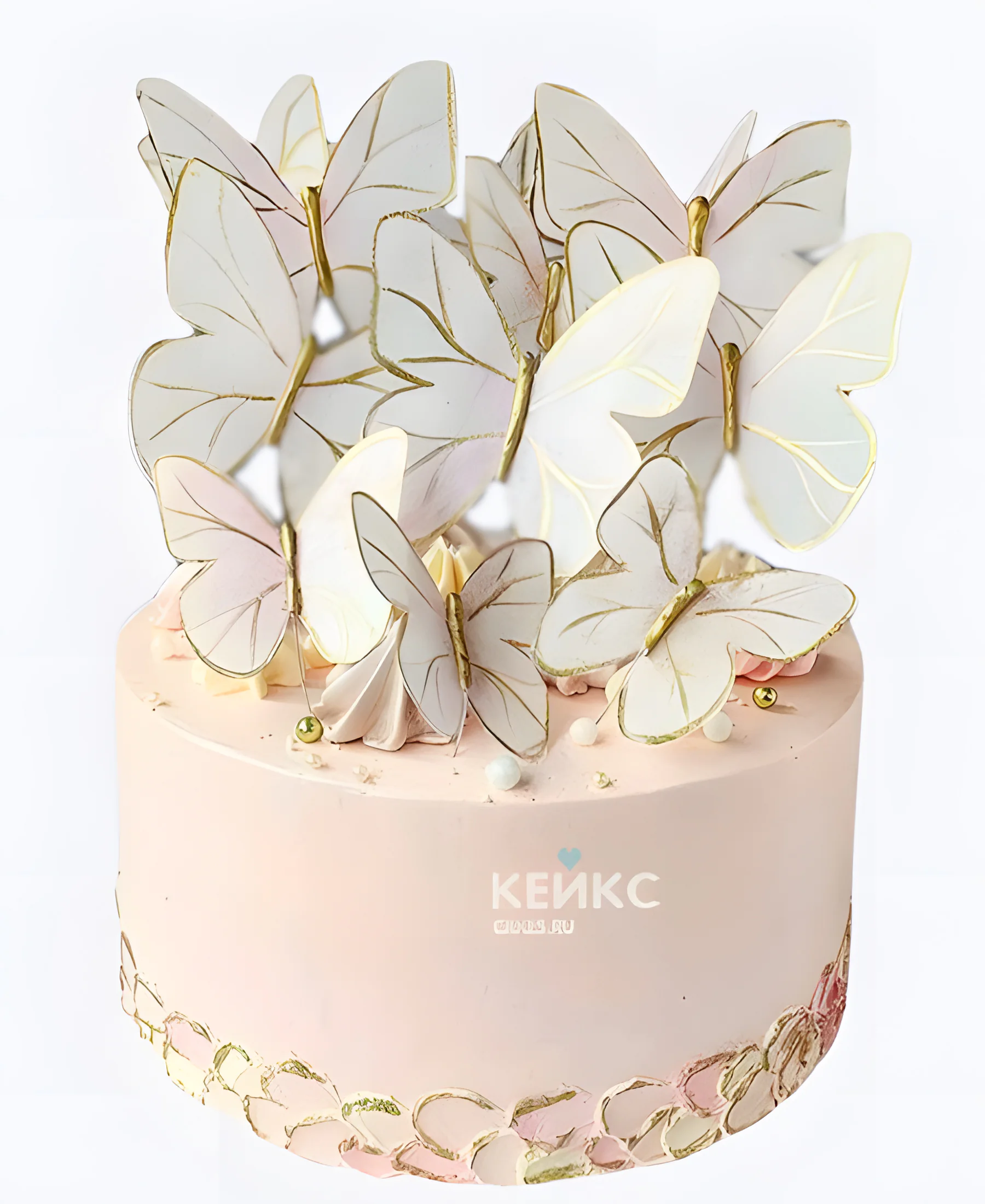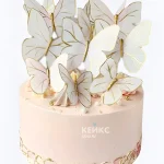 Свадебный торт с бабочками нежно-розовый