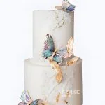 Свадебный торт с бабочками и золотыми веточками
