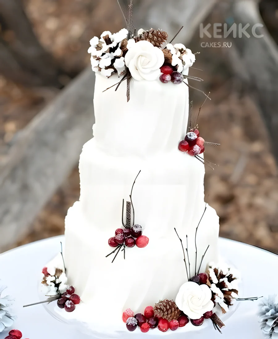 Свадебный торт с цветами и красными ягодами