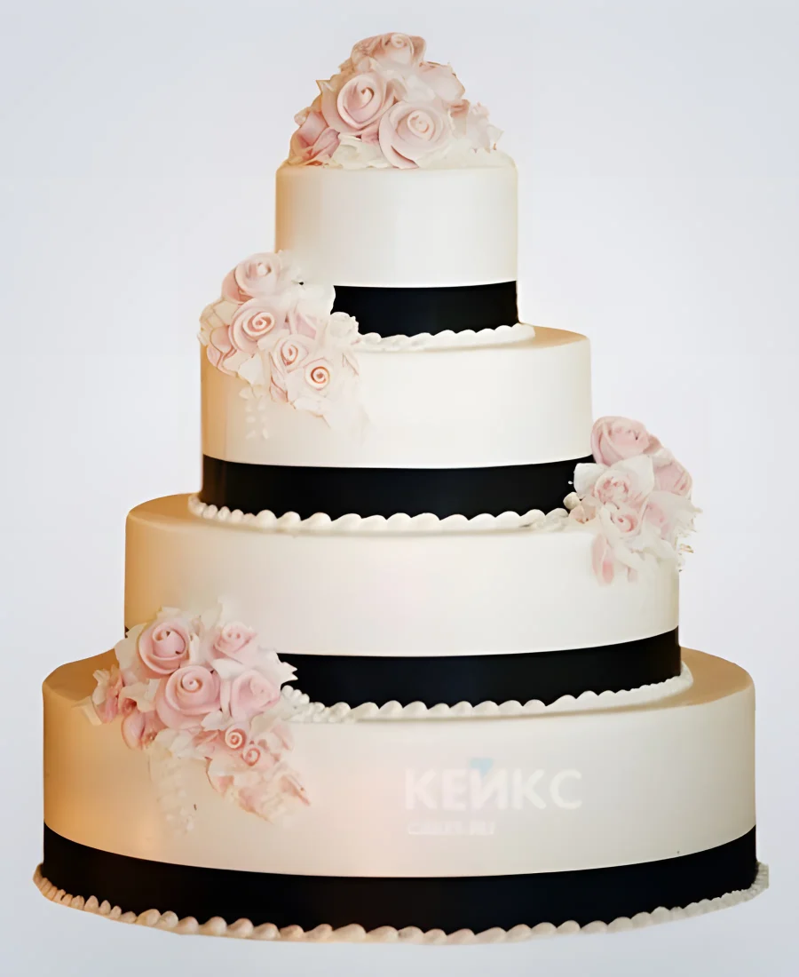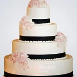 Свадебный торт с черными полосами и розовыми цветами