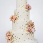 Четырехъярусный свадебный торт с цветами