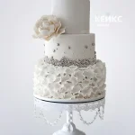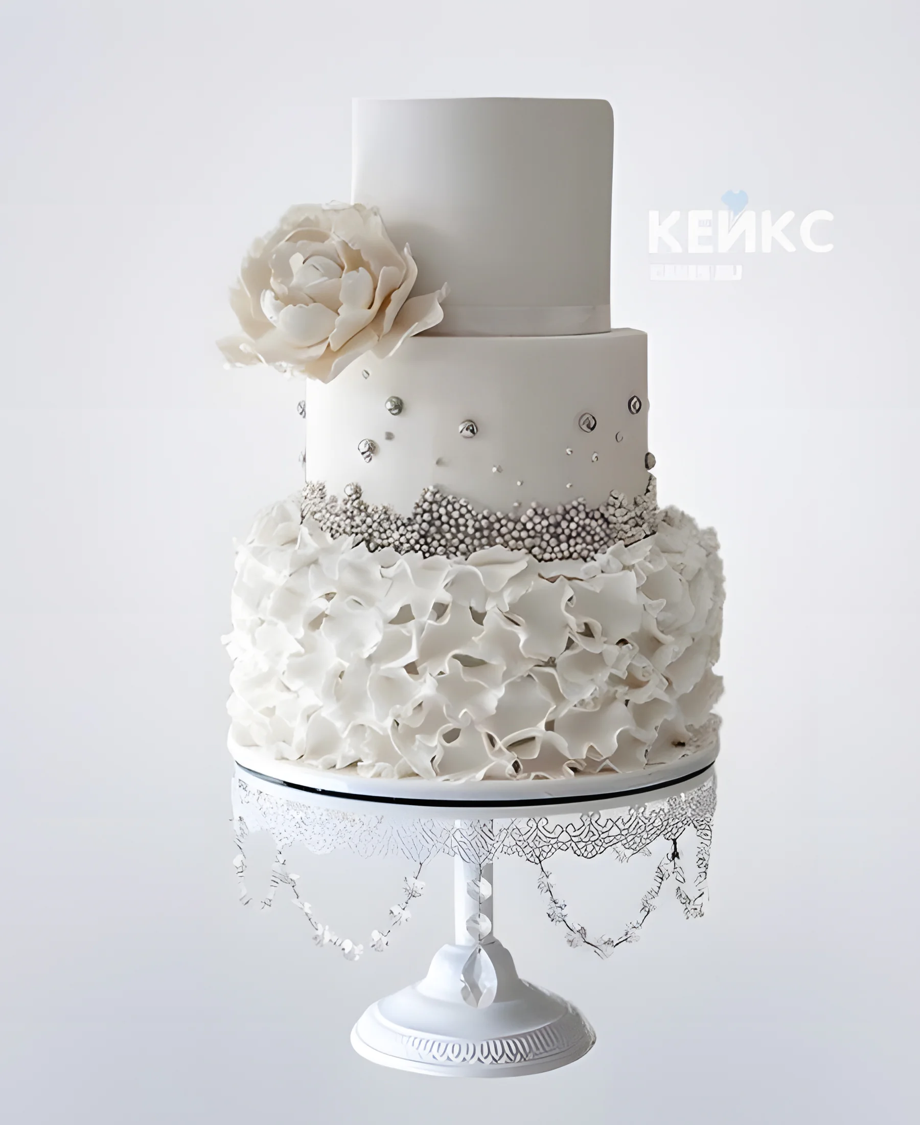 Шикарный свадебный торт с цветами, декорирован серебряными бусинками