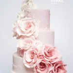 Трехъярусный свадебный торт с розовыми цветами