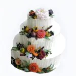 Этот воздушный белоснежный торт словно соткан из облаков. Три изящных яруса украшены нежными георгинами – их лепестки так искусно выполнены, что кажутся настоящими. Переливы кремовой глазури создают эффект мягкого мерцания, а плавные линии придают торту особую грацию. Цветы расположены асимметрично, что добавляет композиции лёгкую динамику. Сдержанная палитра и лаконичный декор делают этот торт воплощением элегантности.