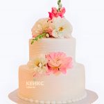Свадебный торт с георгинами двухъярусный рифленый