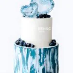 Свадебный торт с голубыми сердечками из камней и ягодами