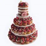 Свадебный торт с капкейками в стиле рустик и с клубникой