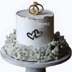 Простой свадебный торт с обручальными кольцами и цветами