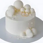 Нежный свадебный торт в пастельных тонах украшен изящными золотыми кольцами и перламутровыми шариками. Белоснежная кремовая текстура создает ощущение воздушности и легкости. Элегантные золотые акценты перекликаются с жемчужными деталями, образуя гармоничную композицию. Такой десерт станет прекрасным символом любви и единства, добавляя торжеству особую романтическую атмосферу.