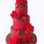 Свадебный торт с красным кружевом и розами