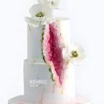 Свадебный торт с кристаллами и розовой жеодой Белые цветы