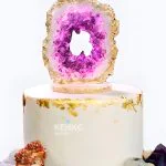Свадебный торт с кристаллами и жеодой одноярусный фиолетовый круг