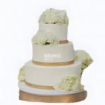 Этот трехъярусный торт выглядит как настоящий цветущий сад! Нежные розовые и белые мастичные цветы переплетаются по всей поверхности, создавая ощущение легкости и воздушности. Каждый лепесток тщательно проработан, что придает торту удивительную реалистичность. Сочная зелень листьев гармонично дополняет пастельную гамму, а плавные переходы между ярусами делают композицию цельной. Торт словно излучает весеннее настроение, а его цветочные гирлянды напоминают кружевные узоры.