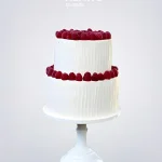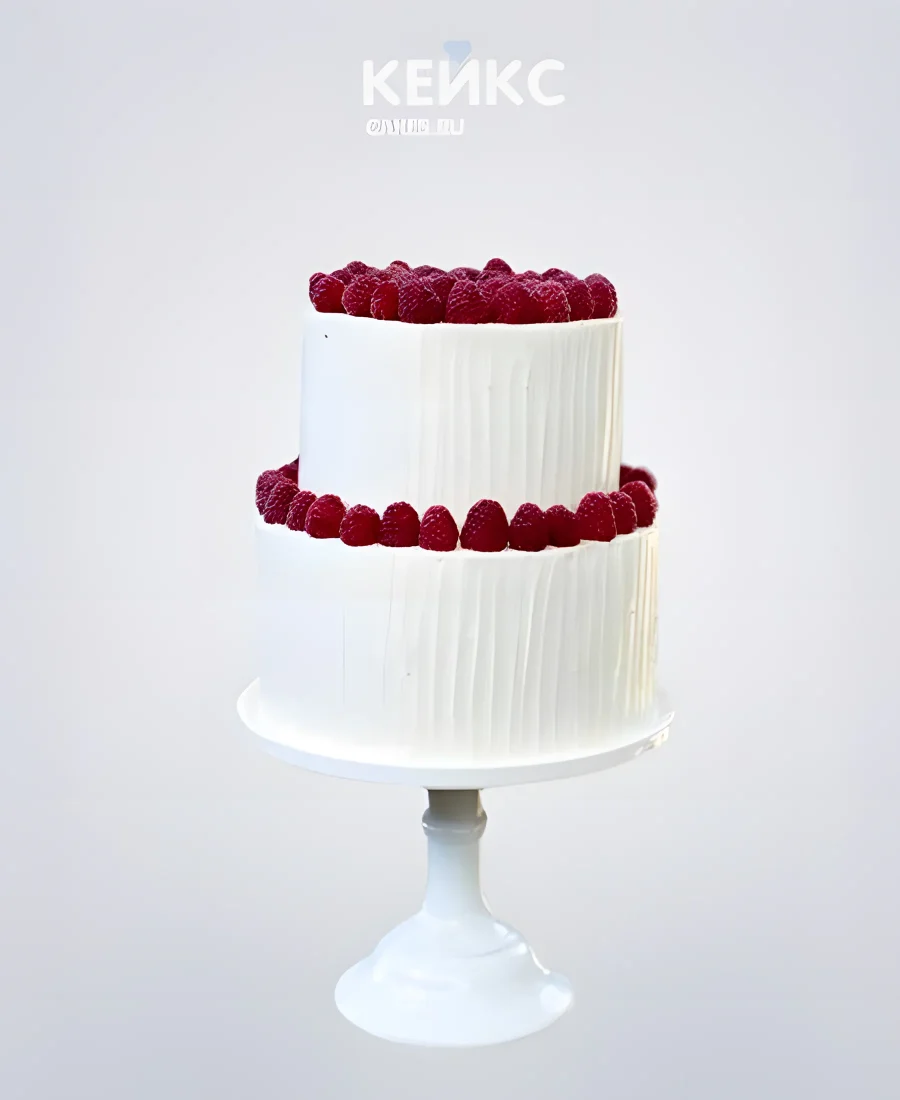 Свадебный торт белого цвета с малиной и двумя ярусами