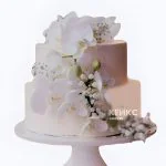 Свадебный торт с орхидеями белый двухъярусный
