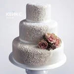 Свадебный торт с розами и кружевами