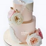 Свадебный торт с розами нежно-розовый
